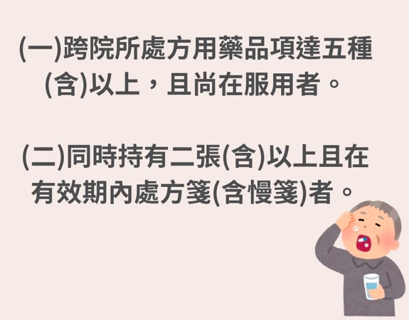 若以上有任一為「是」,請儘快安排用藥整合評估,由藥師協助盤點風險並提出建議。