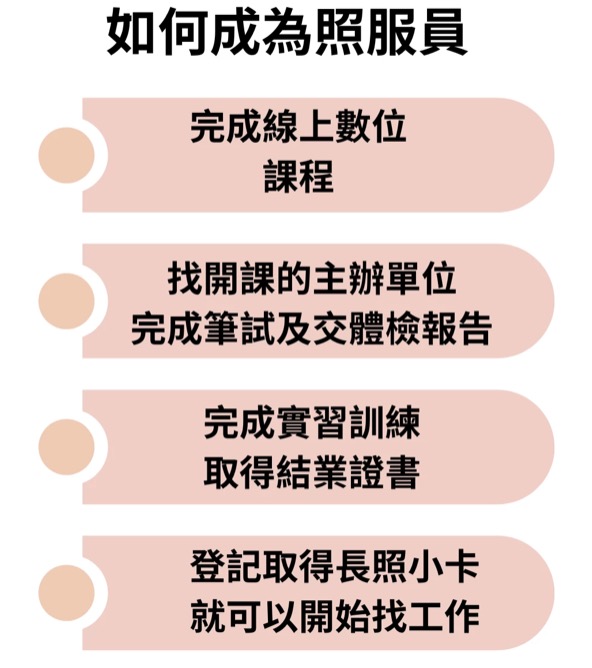 無論是照顧家中長輩,或是進入長照機構、居家服務產業,取得照服員資格都是必經之路。照顧服務員可以簡稱為「照服員」,或是「居服員」(居家服務員,於居家領域進行服務)